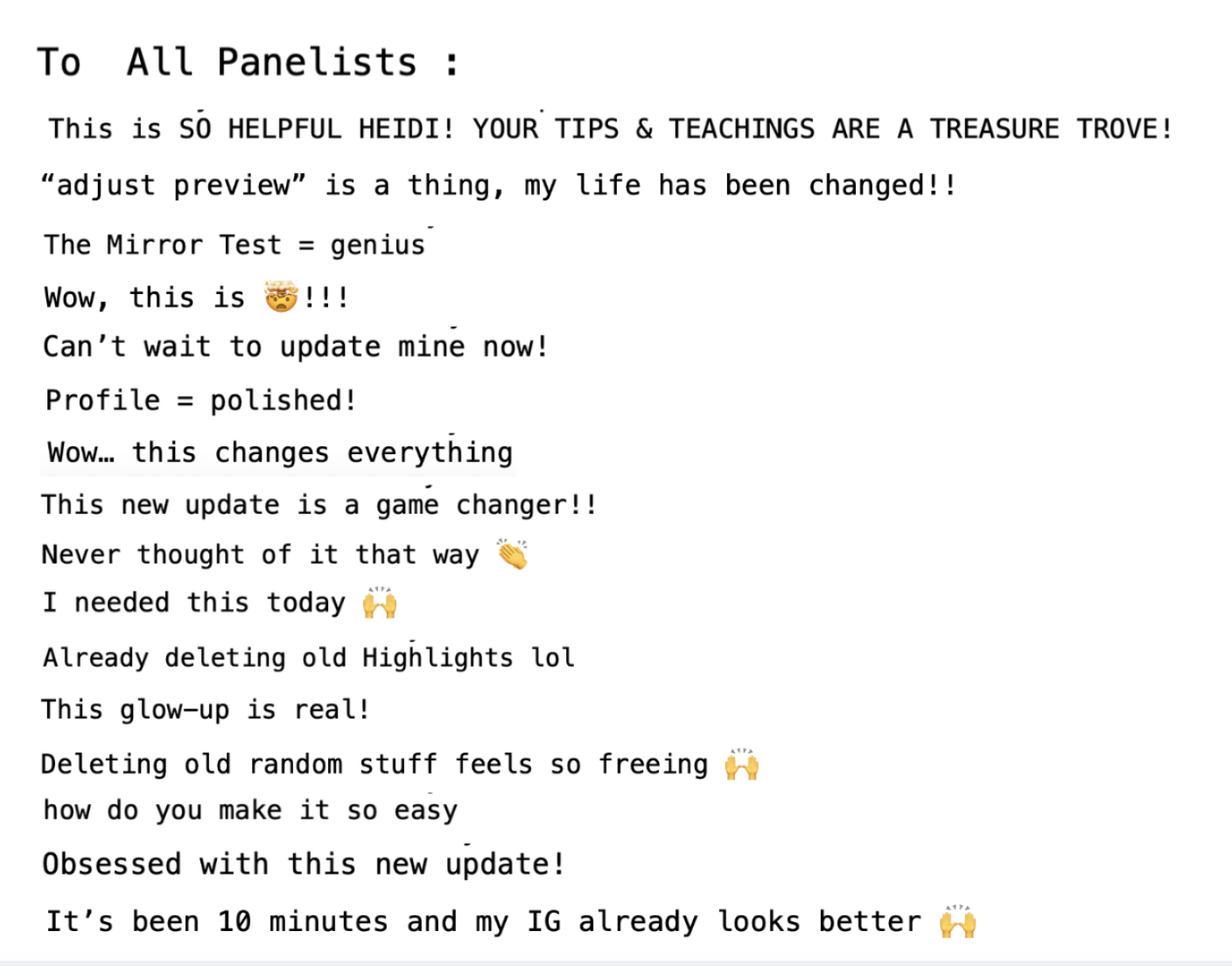 I promise it’ll be worth your time - Here are some of the comments from yesterday’s zoom chat….
